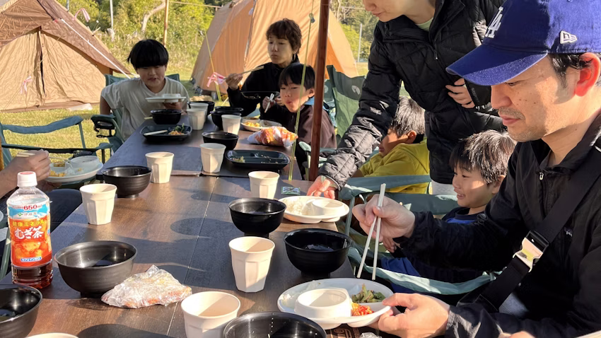 | 料金 | 大人 22,000円 子ども(3歳〜中高生) 17,000円 乳幼児 1,500円(食事が必要な場合) (1日目夕食、2日目朝食食材費、サイト代・テントなどのレンタル代・食材費・保険代等含む) ※入浴代は各自ご負担ください。(車で行ける日帰り温泉あり) |